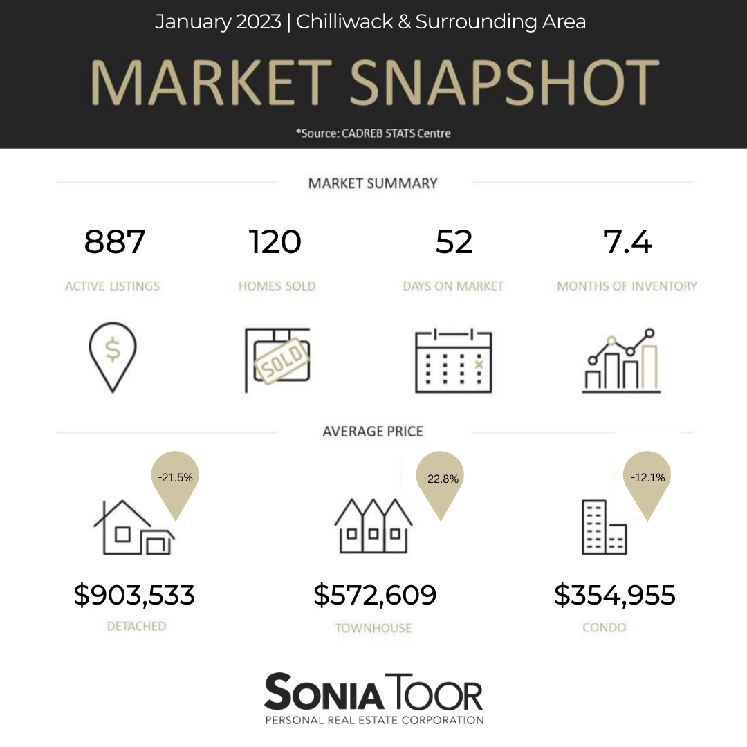 Inventory has gone up in January. There are currently 887 homes listed in Chilliwack in and Surrounding areas. However, the inventory is slightly on the lower side. Homes are starting to get multiple offers in situations where they are priced really well. However most listings are still selling under asking price, so there are definitely deals to be made right now. The average days on market are 52 days. Chilliwack has seen an -21.5% decrease in prices for detached homes when compared to last year at this time. Buyers are still putting in subjects and doing their due diligence. If homes are priced well they are still selling quickly. More buyers are coming back into the market now, so it’s a great time to sell but it’s definitely an even better time to buy because it’s still a buyers market. If you have any questions feel free to reply to this email or give me call/text at 604-812-1326. I would love to hear from you!